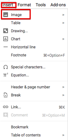 Inserting images in Google docs is super cool. Go to Insert-> image. Unlike Microsoft Word, you can get your image at the right place from various resources in one go.